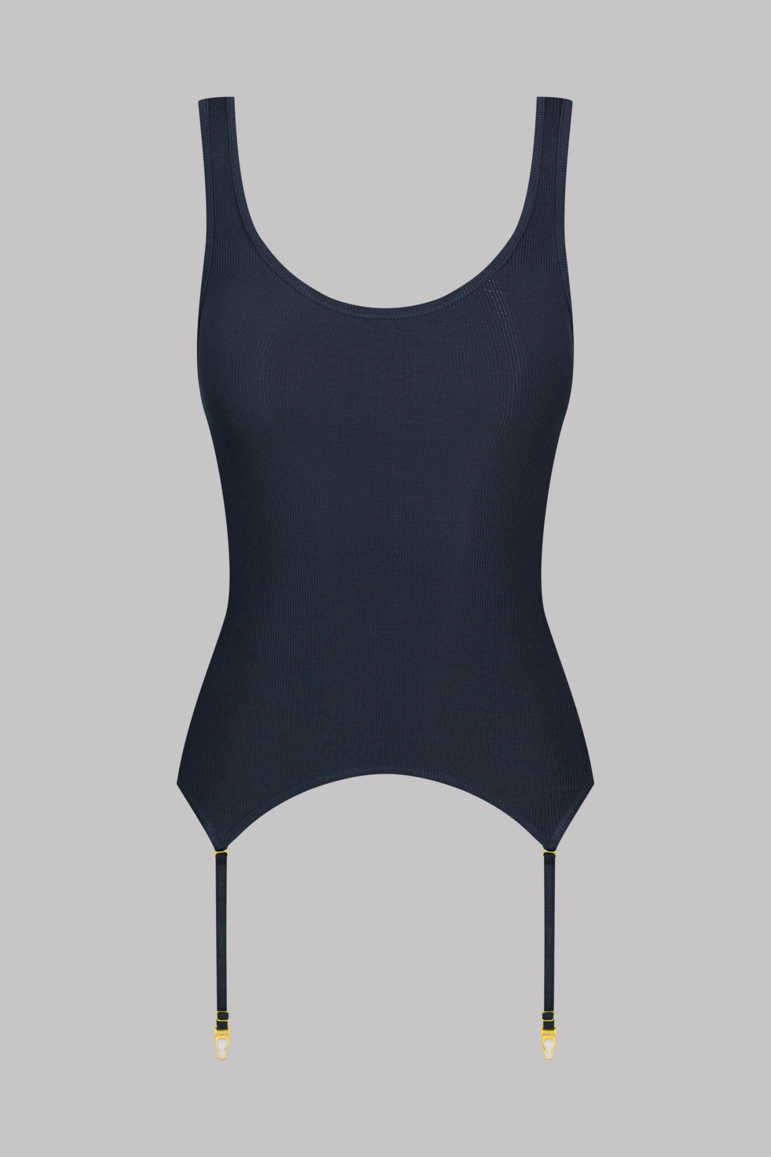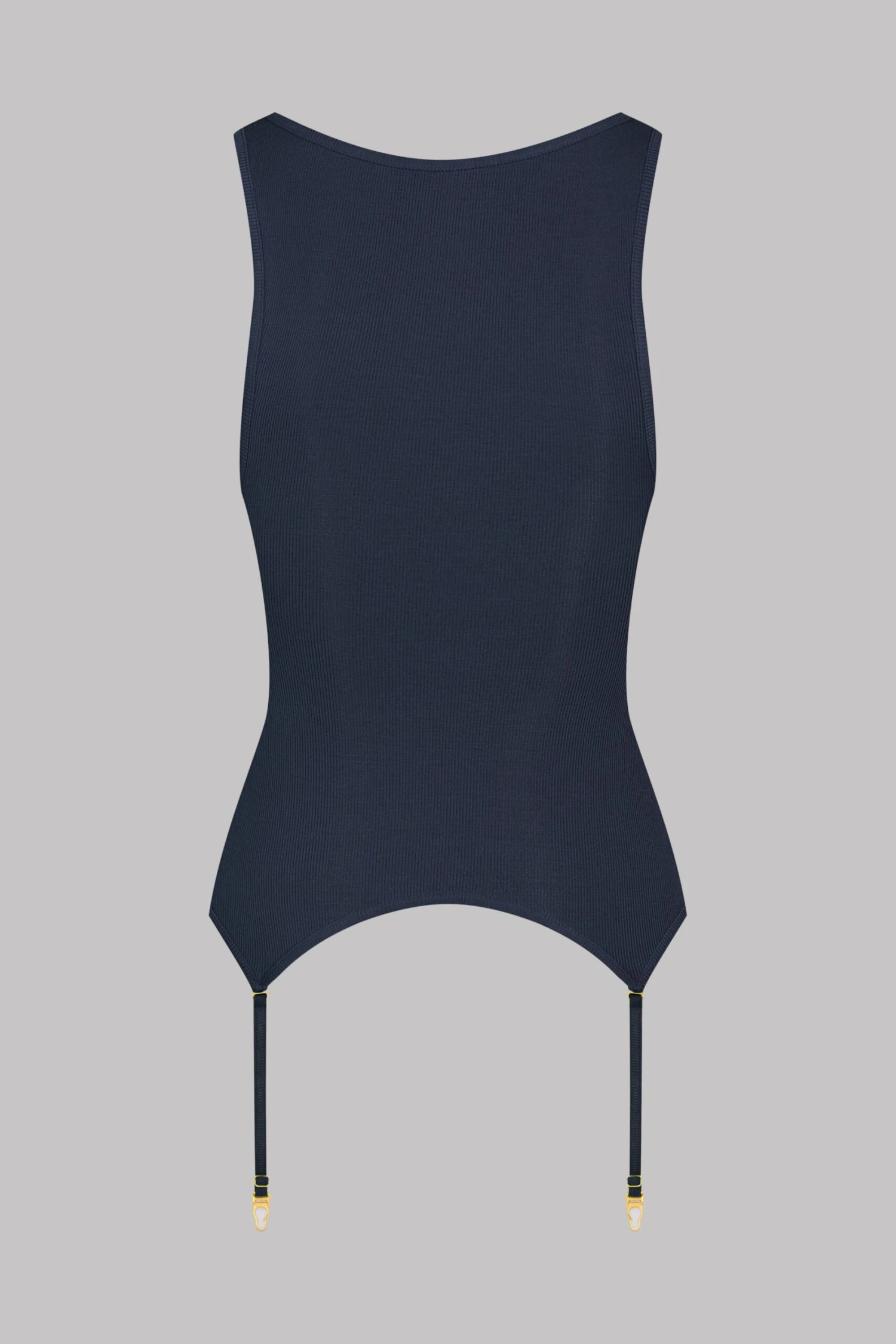 Débardeur porte-jarretelles à bretelles larges. Modal côtelé ultra extensible, doux et léger qui s’étire en brillance comme en transparence. Coupe moulante et épurée au décolleté arrondi.