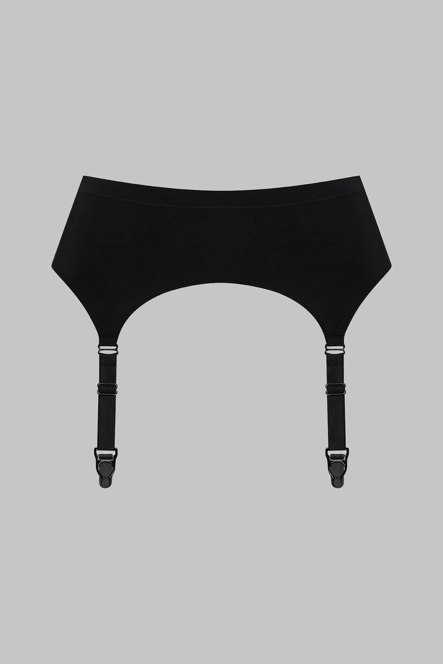 Porte-jarretelles en microfibre semi opaque. Pièce intemporelle à porter avec une paire de bas, grâce aux 4 jarretelles réglables intégrés. Ceinture élastique et réglable au dos.