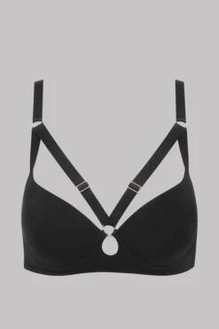 Soutien-gorge balconnet en satin et fine dentelle florale avec armatures. Forme foulard en dentelle qui apporte un maintien irréprochable. Fines bretelles réglables recouvertes de satin. Dos en satin avec fermeture ajustable par agrafages.