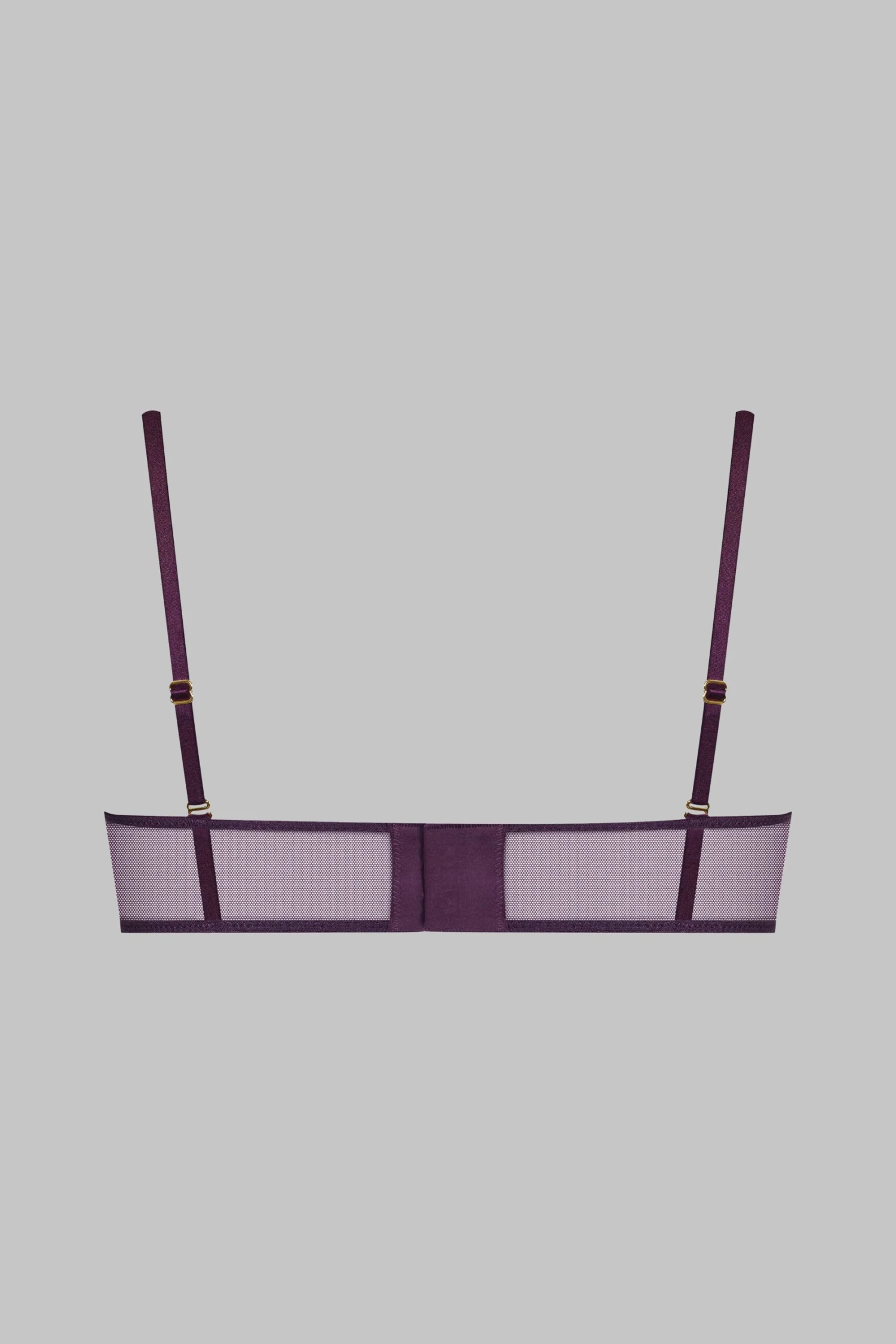 Soutien-gorge corbeille avec armatures en tulle d’une transparence absolue. Bonnets moulés sans coutures qui épousent et galbent parfaitement la poitrine. Fermeture au dos par un agrafage lisse et fin. Bretelles fines, amovibles et réglables.